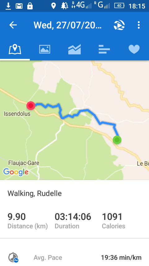 Not long after having left Gramat behind, the trail descended rapidly into a canyon escavated over the centuries by the Alzou river, which apparently should have had originally a very turbolent life in his younger dsys with many rapids and waterfalls, but now reduced to be pretty dry riverbed at least during the summer season. As silent witnesses of its past, at the bottom of the canyon there are a number of ruined water mills, indicating very significant changes in the economy of the valley in the last 200 years or so.