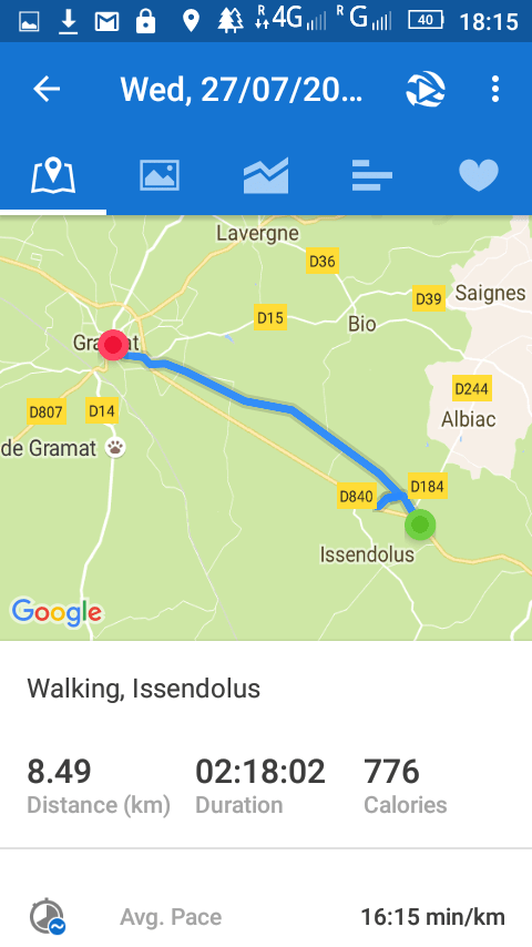 Gramat turned out as a very nice little city finally with some social life, offering all varieties of food and drinks, shops, etc. We ended up to select a favourite restaurant, le Coeur Gourmand, known for its simple but freshly prepared meals. We also could shop for our packed lunch for the day ahead, and opted for some Couscous and ham, with the unmissable baguette and croissants.