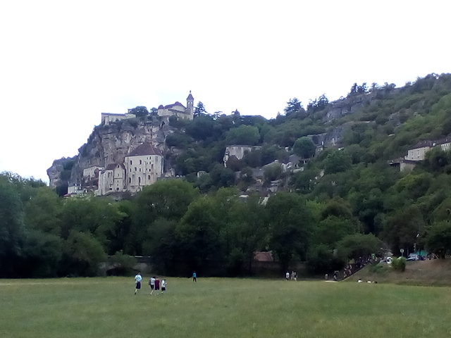 Finally the canyon opens up and the trails turns into a dirt road with clear signs of many cars either parked at the roadside or waiting to pulling into a wide parking area with many people walking in and out or having picnics with their families. To be frank, the massive display of touristic mess is quite a turn off, but the sudden appearance of the layered structure of the Rocamadour village. Sanctuary, Rocks and the Castle, took literally my breath away.