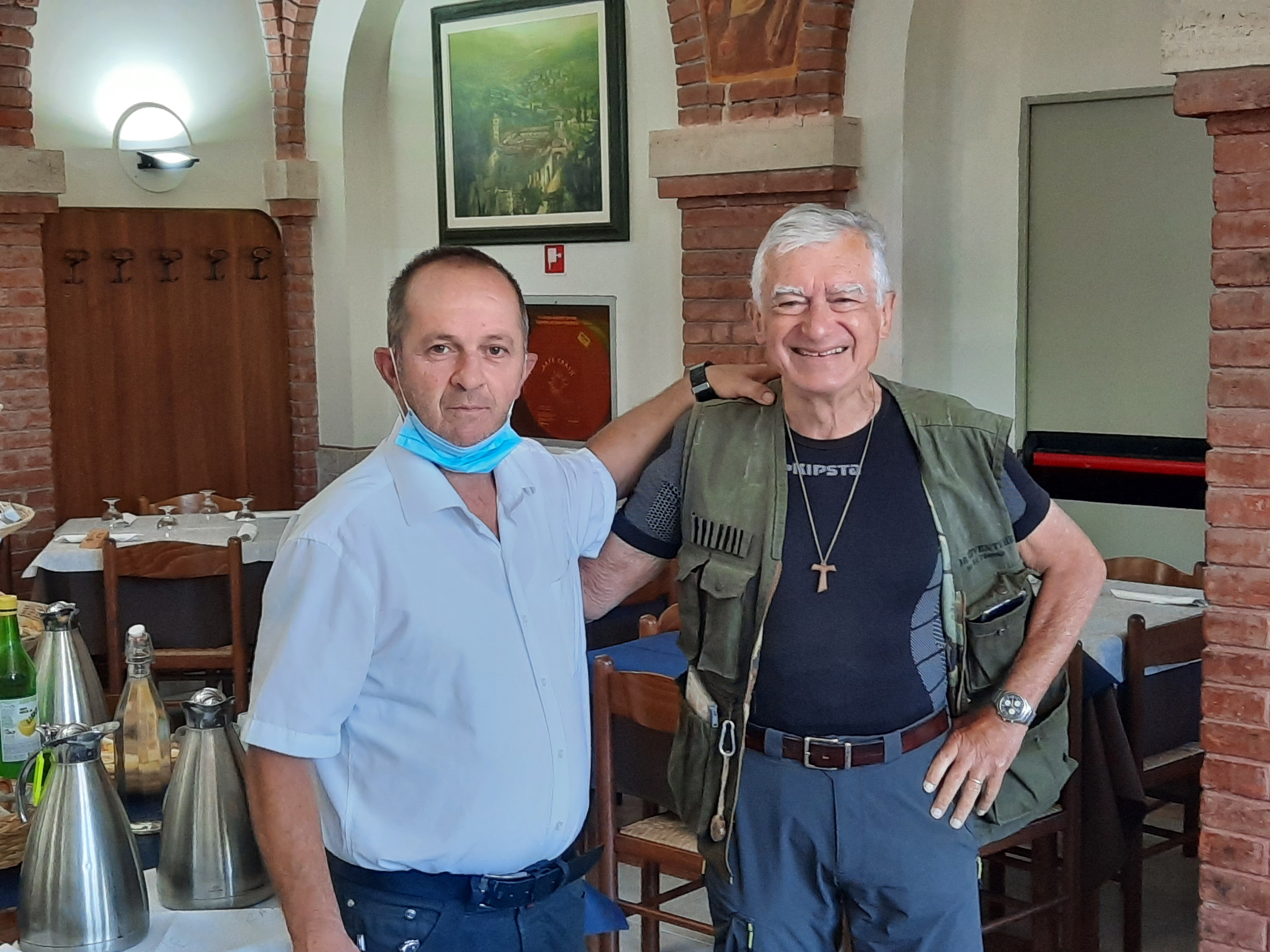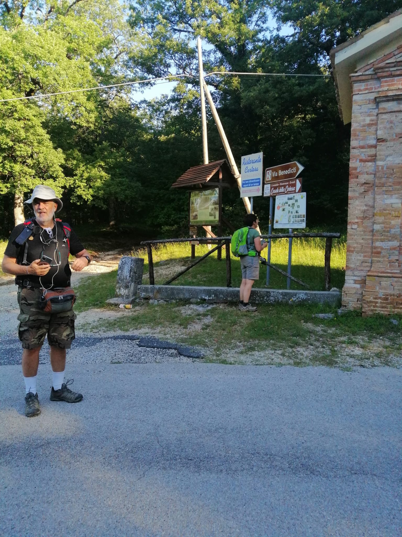 Ma questo è solo un aspetto. L’altro aspetto da considerare è il reciproco del precedente, ovvero il contributo che il Cammino di San Benedetto porta alla valorizzazione e all’economia dei territori attraversati. In molti di questi luoghi di turisti se ne sono sempre visti pochi. Così gli abitanti si erano abituati a pensare che poco o nessun valore vi fosse custodito. Aggiungete a questo un’economia stagnante, la scarsità di posti di lavoro, l’emigrazione dei giovani più dotati, l’invecchiamento della popolazione, e capirete che il Cammino di San Benedetto sta portando in molti dei luoghi attraversati una ventata d’aria fresca. La vista dei camminatori con lo zaino in spalla che si soffermano a guardare con meraviglia i panorami dei monti e delle valli, o che ammirano gli antichi monumenti, le espressioni di delizia riservate ai cibi serviti in generose porzioni nelle trattorie, tutta roba a chilometri zero, tutto questo e molto altro sta spingendo i cittadini locali a fare delle riflessioni. La prima è di essere rimasti troppo a lungo seduti su un grande tesoro senza essersene accorti. I pellegrini sono diventati i preziosi testimoni di una realtà e di prospettive nuove! Non si tratta tanto dei soldi che portano (ancora pochi nella dura situazione post-Covid), quanto della consapevolezza che c’è moltissimo da fare e tanti stanno provando a farlo. Stanno equipaggiando le case per l’ospitalità, attaccano cartelli nei boschi per segnalare i sentieri, ampliano gli orari di apertura di chiese e musei, offrono ai pellegrini ottimi menù nelle trattorie… Inoltre i pellegrini trovano qui gente simpatica e ospitale che si fa in quattro per soddisfare ogni loro richiesta. Ti fermi ad un incrocio dubbioso su dove andare, e qualcuno subito appare ad un balcone per indicarti la via. In piena campagna trovi chi ti offre acqua freschissima e ti invita in casa per un liquorino con una fetta di crostata. Trovi gente che ti porta gratuitamente lo zaino a destinazione. E tanta disponibilità a fare due chiacchiere, a raccontarti sul loro borgo cose che non sono scritte su alcuna guida. Tutte attenzioni che noi camminatori non avevamo ricevuto da nessuna altra parte!