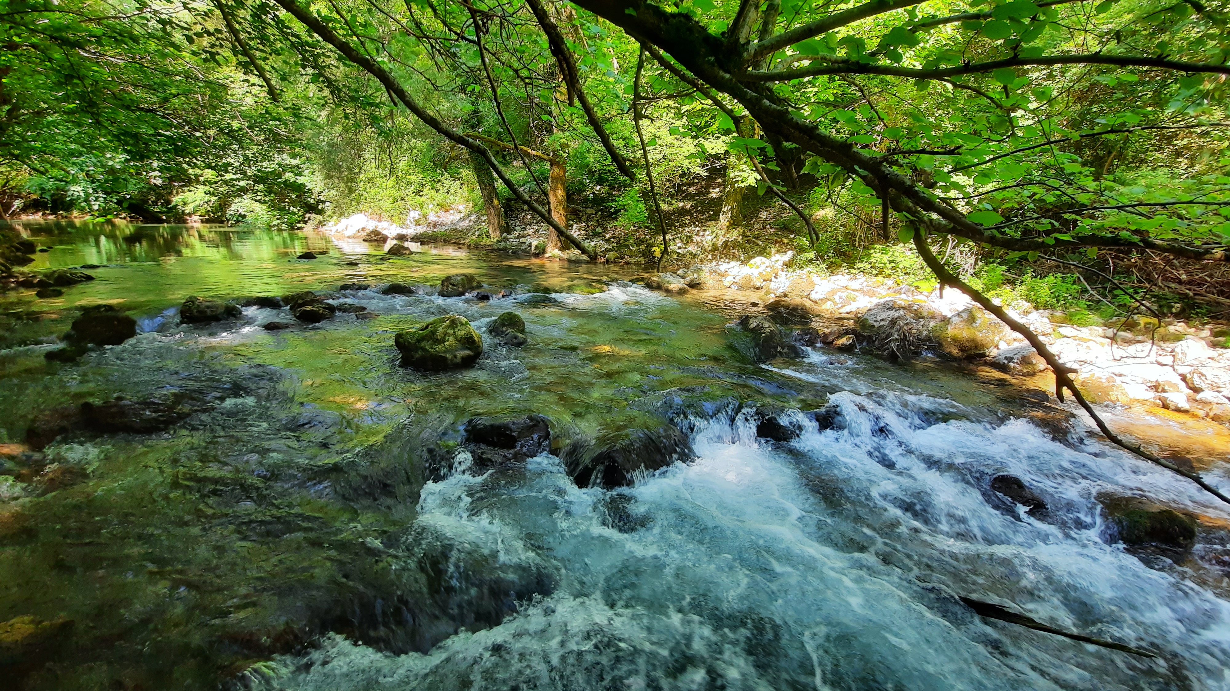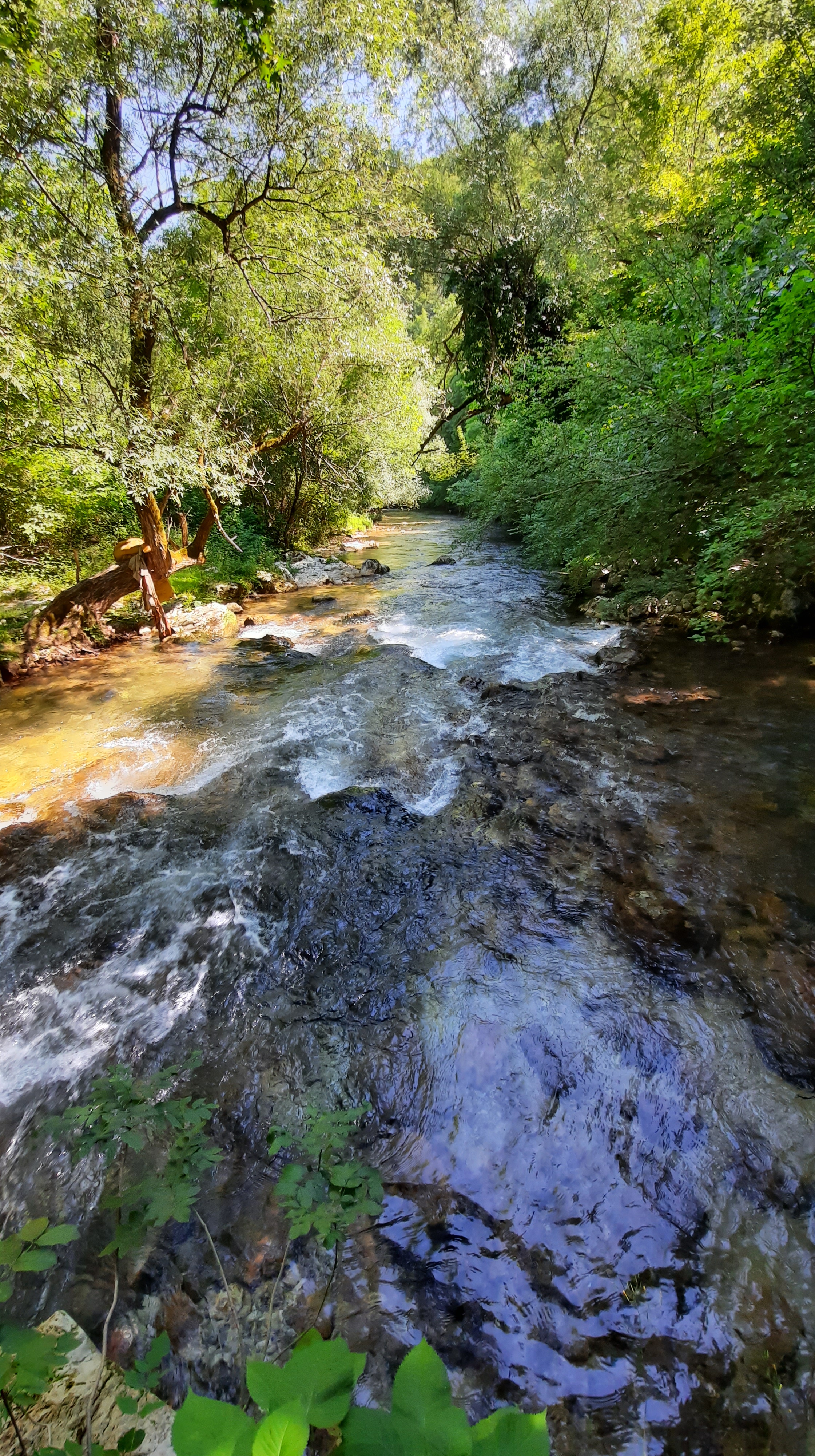 Il percorso è definito facile e, leggeri senza gli zaini, percorriamo i primi 10km abbastanza velocemente lungo una buona sterrata che in molti punti si apre sull’Aniene offrendoci notevoli e suggestivi scorci delle acque del torrente.