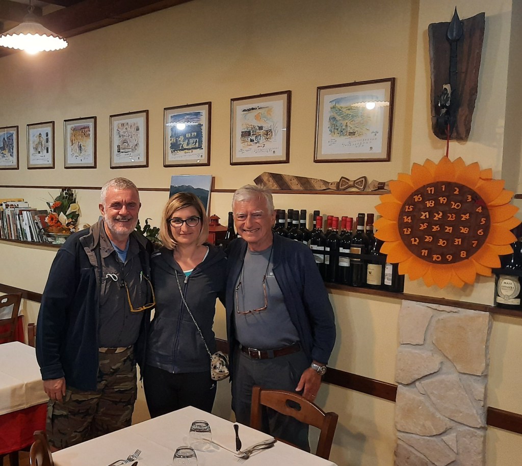 Luisa è un Amica del Cammino, parte di quel gruppo di persone entusiaste e pronte a mettersi in gioco per ribaltare le sorti dei tanti borghi che abbiamo visitato lungo il Cammino, affinchè le comunità che ancora popolano questi borghi possano capire che il pellegrino o il viandante possono rappresentare una vocazione turistica di tutto rispetto al di fuori delle folle domenicali o di altre forme di turismo di massa che difficilmente sono attratte dalle poche infrastrutture di questi borghi. Luisa ci contagia con il suo entusiasmo: ci raggiunge per un caffê al ristorante il Girasole e ci parla delle difficoltà da sormontare ma senza lamentarsi. Le auguriamo buona vita, e ci promettiamo di tenerci in contatto per magari riuscire a sostenere qualche altra iniziativa intorno al Cammino.