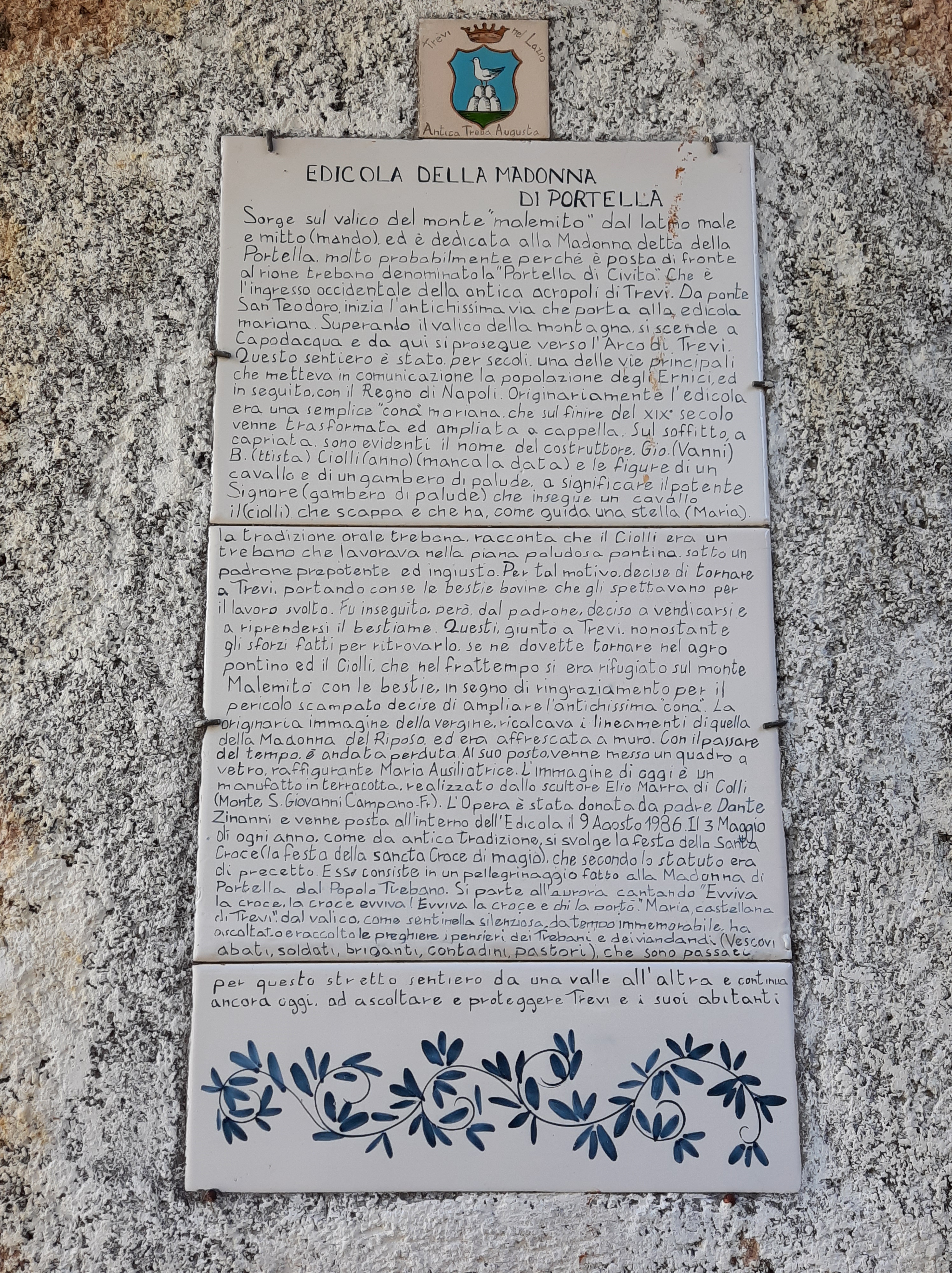 Partiamo di buon ora per una traversata che a sentire gli abitanti di Trevi si preannuncia come un gioco da ragazzi, una cosetta da tre ore al massimo, ma che invece a giudicare dai profili altimetrici e avendo avuto già qualche esperienza con i sentieri appenninici locali, pensiamo sia più impegnativa del previsto. Primo check-point alla cappella della S.Maria del Portello, dove impariamo la storia dell’abigeato del Ciolli.