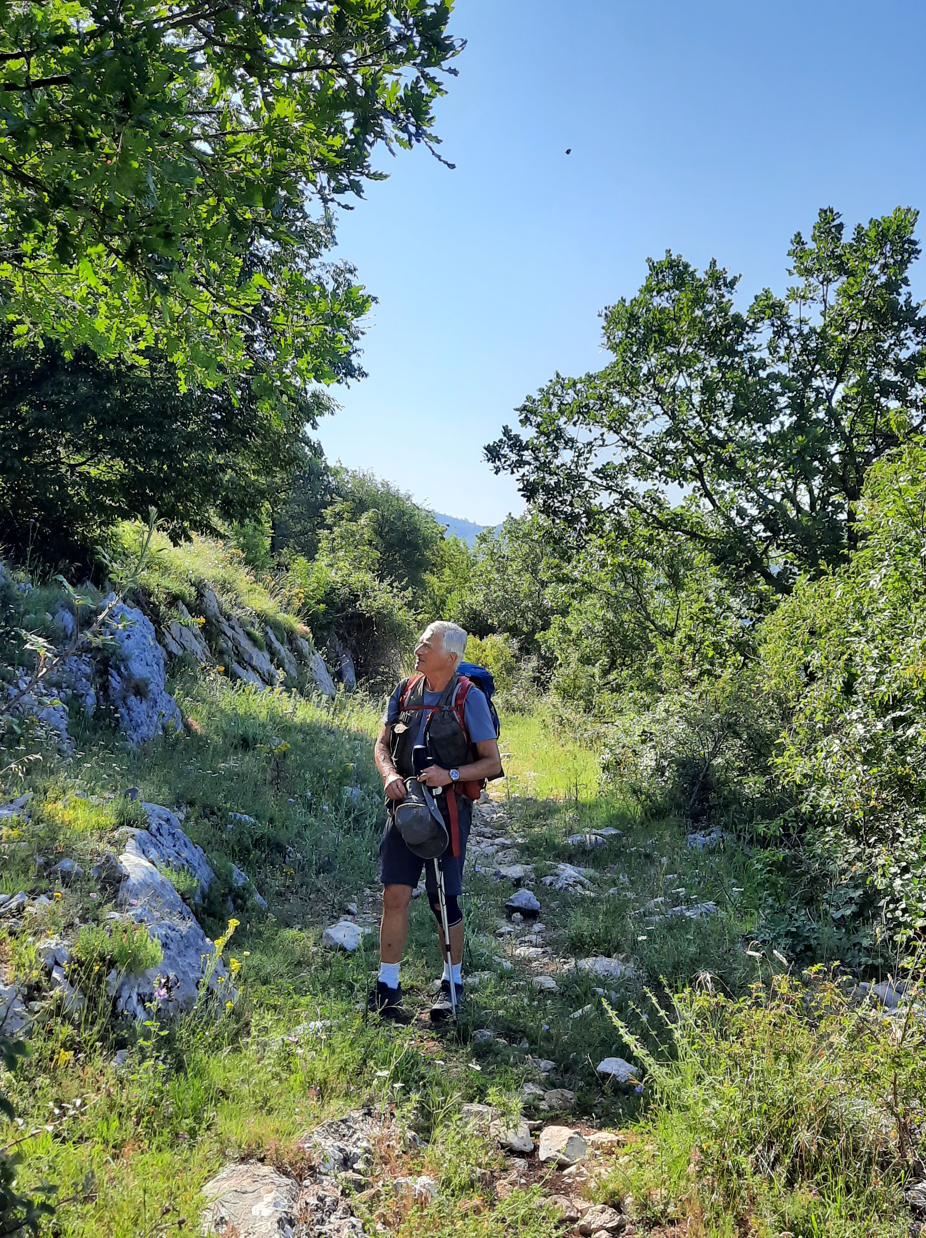 Oscar cammina silenzioso qualche passo avanti a me sul sentiero che sale per aggirare la collina che ci nasconde la vista dell’Abbazia. Sono circa le 10 e forse abbiamo ancora un paio d’ore di cammino per giungere alla nostra meta. D’improvviso si ferma, si volta, e mi dice: “Roberto, vorrei affrettare il passo per riuscire a visitare l’Abbazia e poi precipitarmi alla stazione e prendere al volo un treno per essere stasera a casa per cena. Magari riusciamo a salutarci su al Monastero, altrimenti ci sentiamo al telefono”. Di fatto, come avrebbe detto de Andrè riferendosi a Re Carlo, sparì alla vista tra i glicini ed il sambuco. Fa parte delle regole non scritte che due adulti vivano le esperienze di un Cammino in modo totalmente indipendente, scegliendo liberamente su cosa fare a seconda delle proprie esigenze o priorità, ma fa parte anche delle regole non scritte, che ciò che si intraprende insieme debba avere anche un punto di arrivo comune che sia condiviso e celebrato insieme. Non posso nascondere che questo inaspettato epilogo mi sia dispiaciuto, e anche molto, ma sono sicuro che Oscar abbia avuto i suoi buoni motivi per agire così, e non gliene vorrò. Gli auguro un buon rientro e procedo pensieroso per la mia strada.