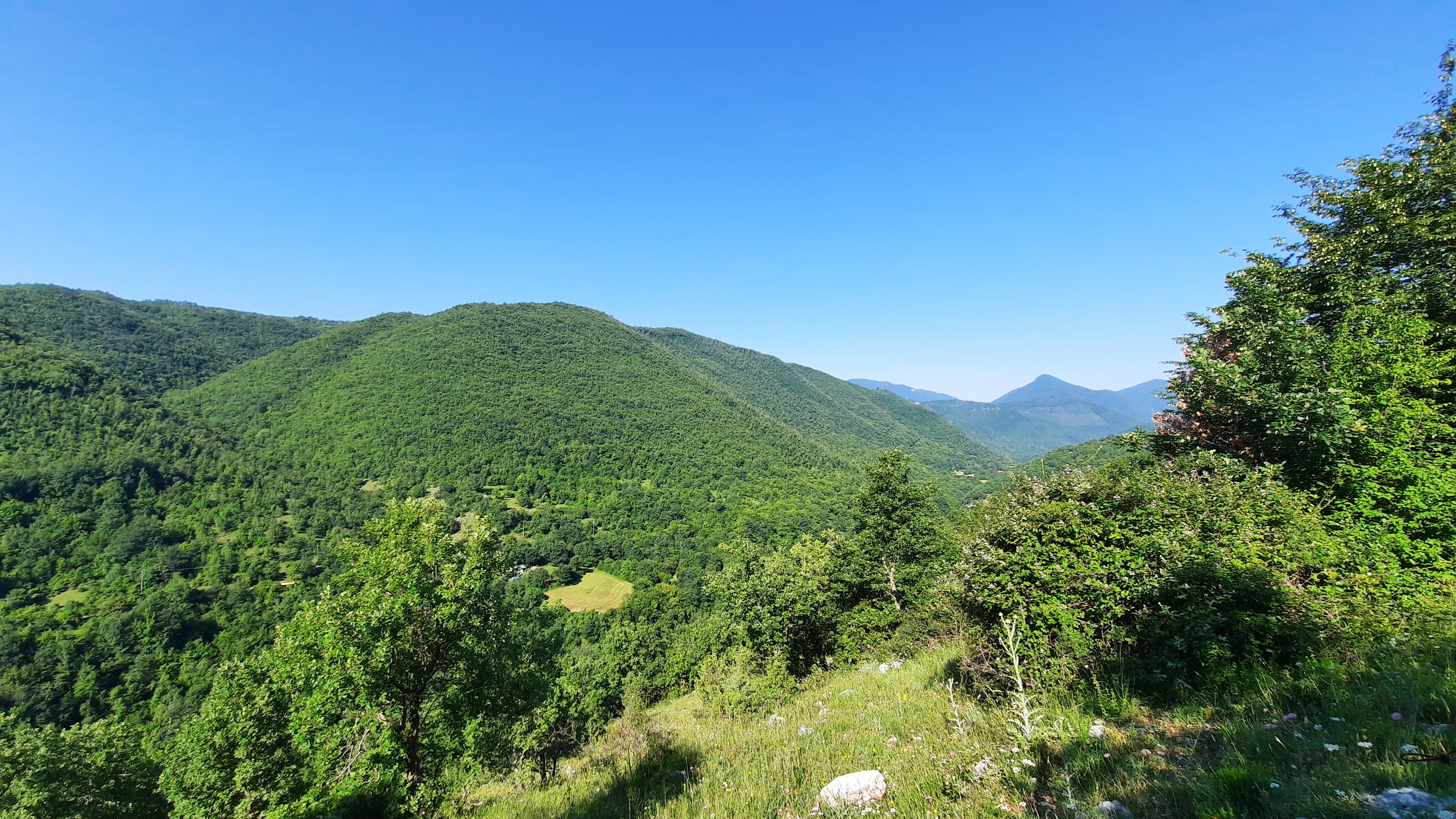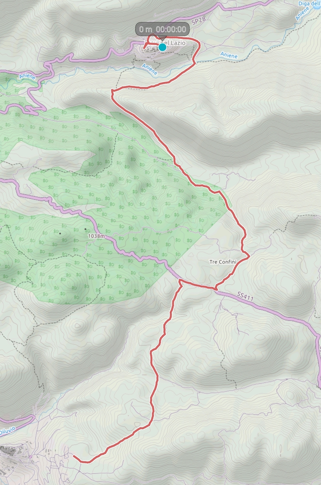 Dopo poco arriviamo alla SR411 punto in cui ci separiamo dal tracciato del Cammino per dirigerci su Fiuggi seguendo un sentiero del CAI, ma di scarsa o addirittura assente manutenzione. Ben presto il sentiero si manifesta per quello che realmente è, cioè per una via di transumanza delle mandrie che dalla valle risalgono per pascolare nei bellissimi prati in quota.