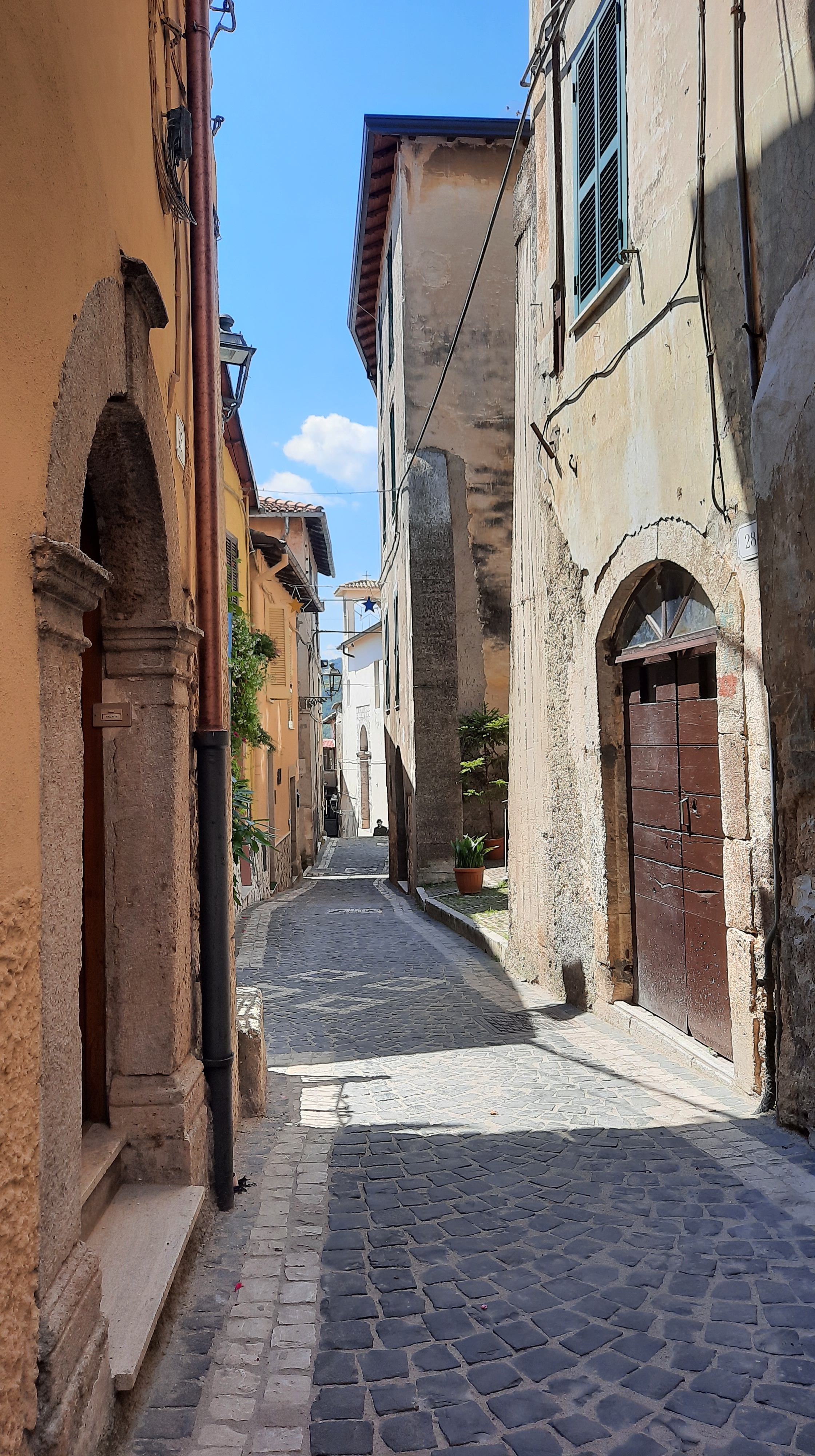 Riprendiamo il cammino ma sono già le 13. Ad un bar troviamo Stefano che dopo averci raccontato metà della sua vita e noi della nostra, ci fa: “Aho’, ma non sarete mica matti a salire ad Arpino mo’ con questo caldo, aspettate che vi ci porto io…” In men che non si dica, fa partire la macchina parcheggiata nei pressi e ci tira su. Una benedizione considerata la strada che ancora ci sarebbe stata da fare. Grazie Stefano, un altro angelo traghettatore incontrato sul nostro Cammino.