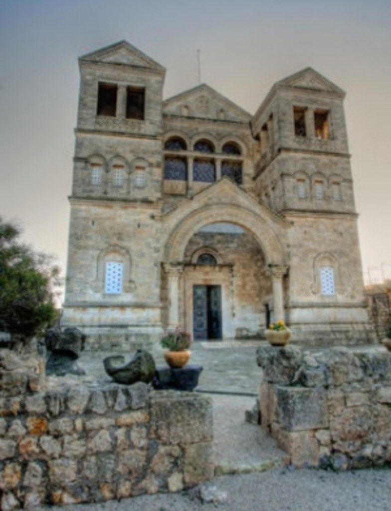 Con animo reso leggero dalla vicinanza della meta e dal cielo azzurrissimo mi accinsi alla salita che fu assai piacevole data la varietà dei paesaggi che continuamente si dischiudevano sulle colline della Galilea. In poco più di un’ora arrivai in cima. Un grande arco in pietra di epoca crociata accoglieva i pellegrini. Dietro di esso un lungo viale circondato da aiuole fiorite conduceva al Tempio. Sul lato destro una fila di bassi edifici era destinata ad ospitare i frati e i visitatori. L’intero complesso è stato ricostruito nel 1924 sulle rovine di un monastero benedettino di epoca crociata distrutto nel 1221 dal sultano al-Malik. Era lì che avrei dormito quella notte.