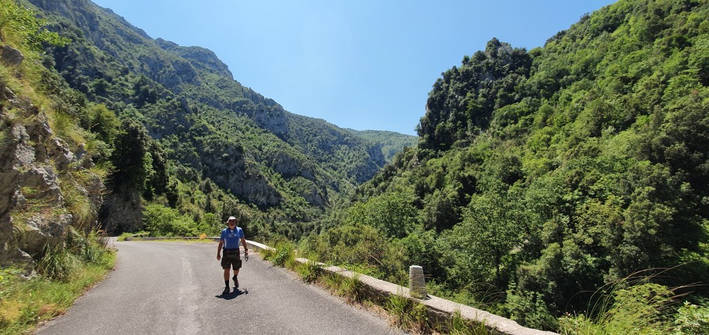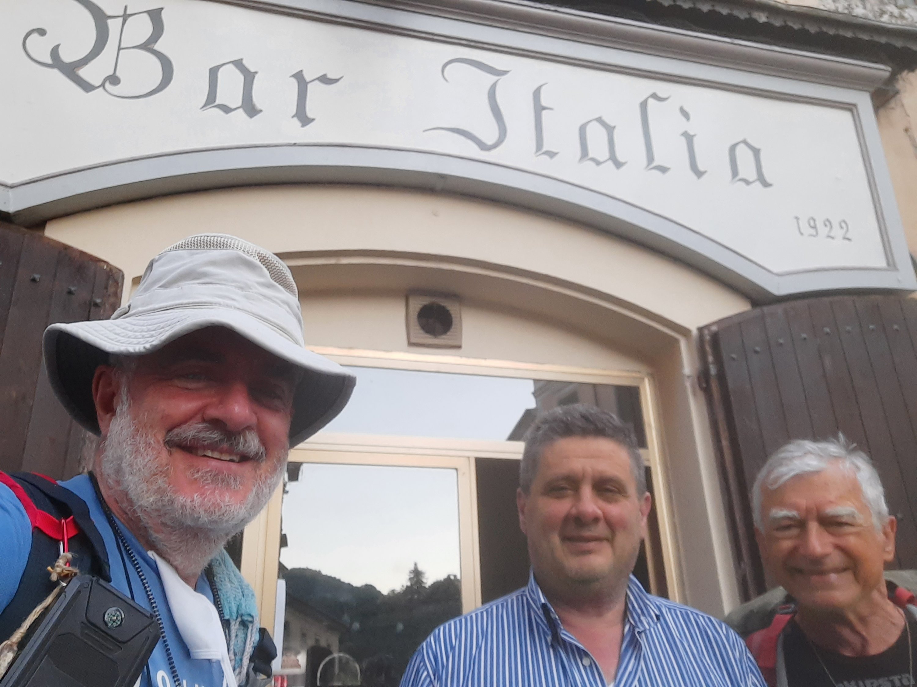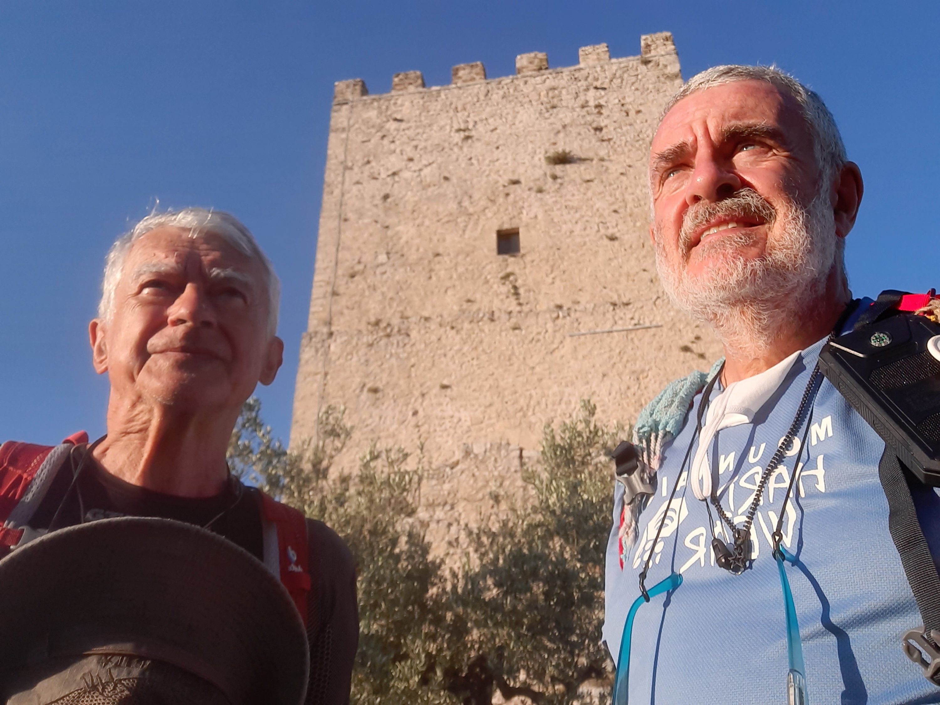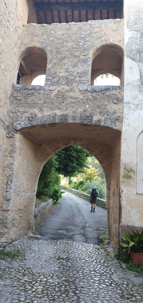 Oggi incontriamo tante persone gentili che si intrattengono volentieri con noi. A partire dal factotum Tommaso di Roccasecca che percorre più volte al giorno la strada da Arpino a Montecassino per accudire i pellegrini sotto la sua giurisdizione di ogni necessità: portare o andare a prendere zaini e valigie, portare persone a visitare luoghi fuori tracciato, prendere e portare persone dalla stazione, portare bottiglie di acqua a camminatori disidratati lungo le gole del fiume (secco) del Melfa, gestite i pernottamenti a Roccasecca per garantire a tutti il giusto confort dopo la camminata, e probabilmente dimentico ancora qualcosa.