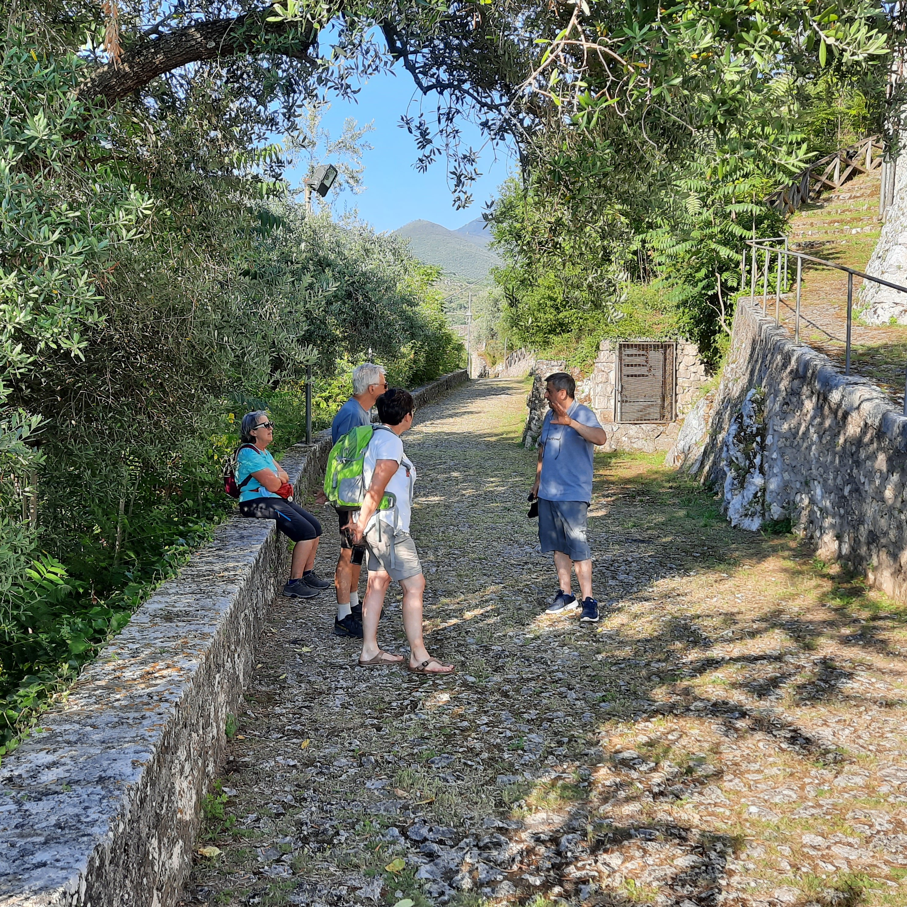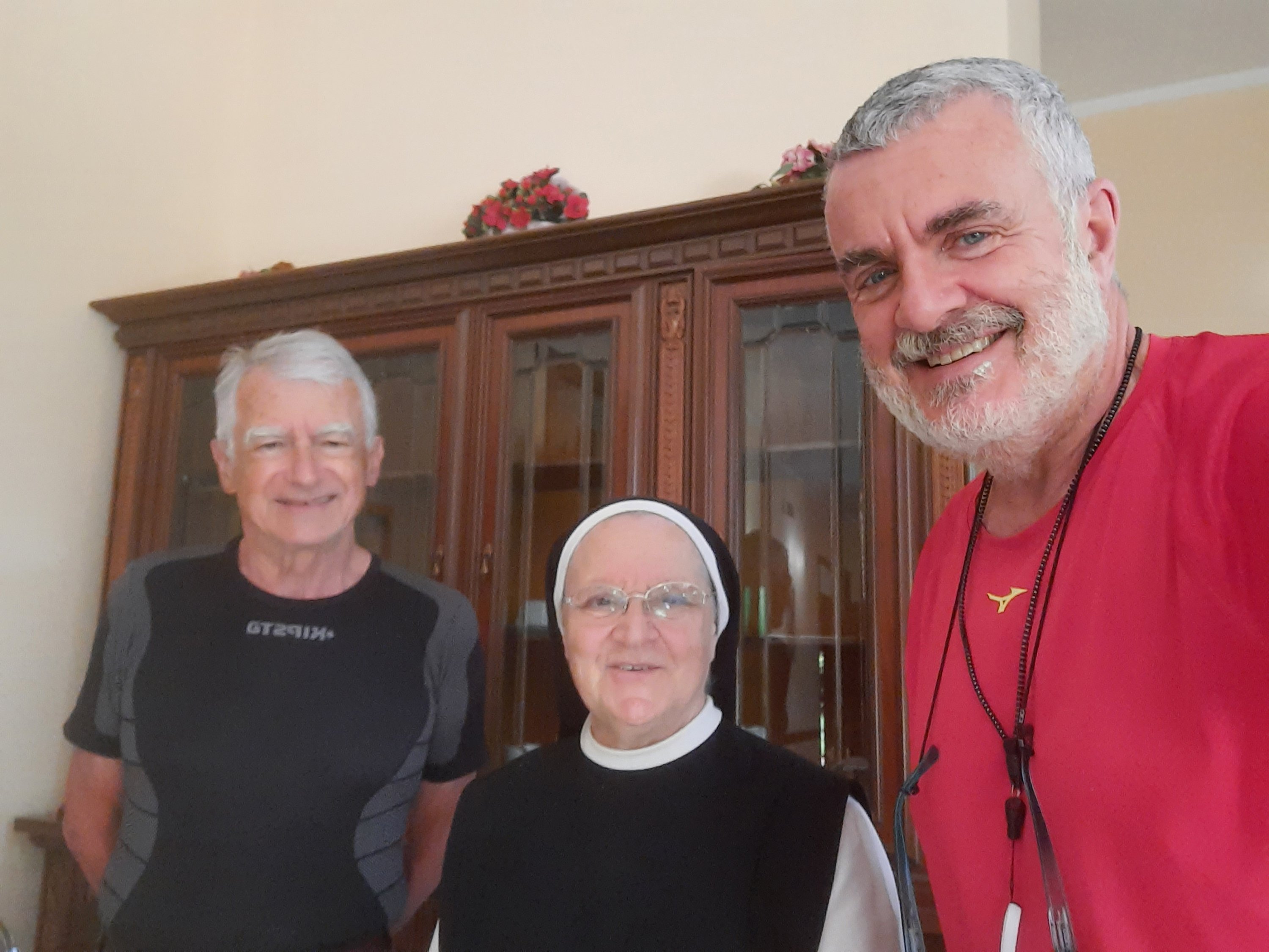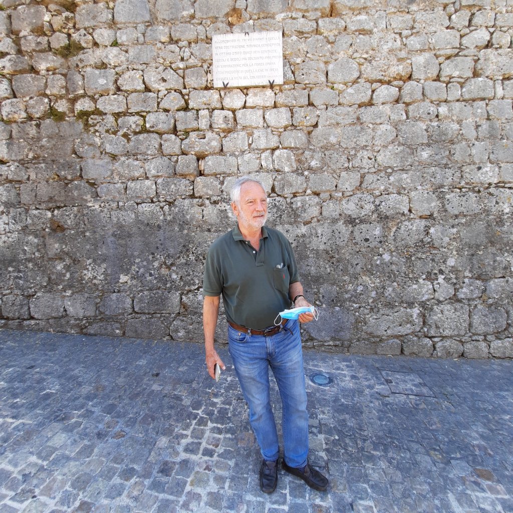 Oggi incontriamo tante persone gentili che si intrattengono volentieri con noi. A partire dal factotum Tommaso di Roccasecca che percorre più volte al giorno la strada da Arpino a Montecassino per accudire i pellegrini sotto la sua giurisdizione di ogni necessità: portare o andare a prendere zaini e valigie, portare persone a visitare luoghi fuori tracciato, prendere e portare persone dalla stazione, portare bottiglie di acqua a camminatori disidratati lungo le gole del fiume (secco) del Melfa, gestite i pernottamenti a Roccasecca per garantire a tutti il giusto confort dopo la camminata, e probabilmente dimentico ancora qualcosa.