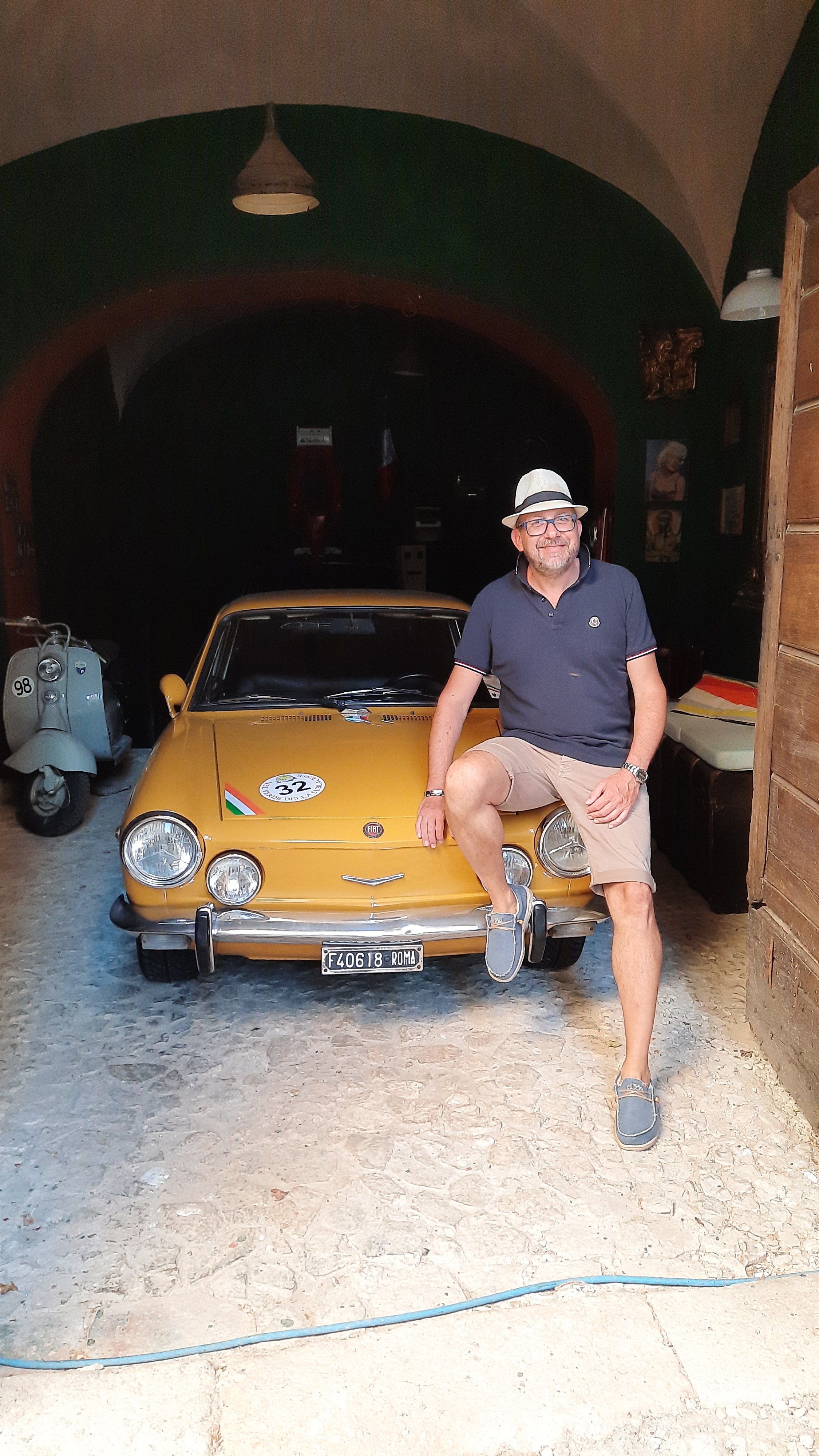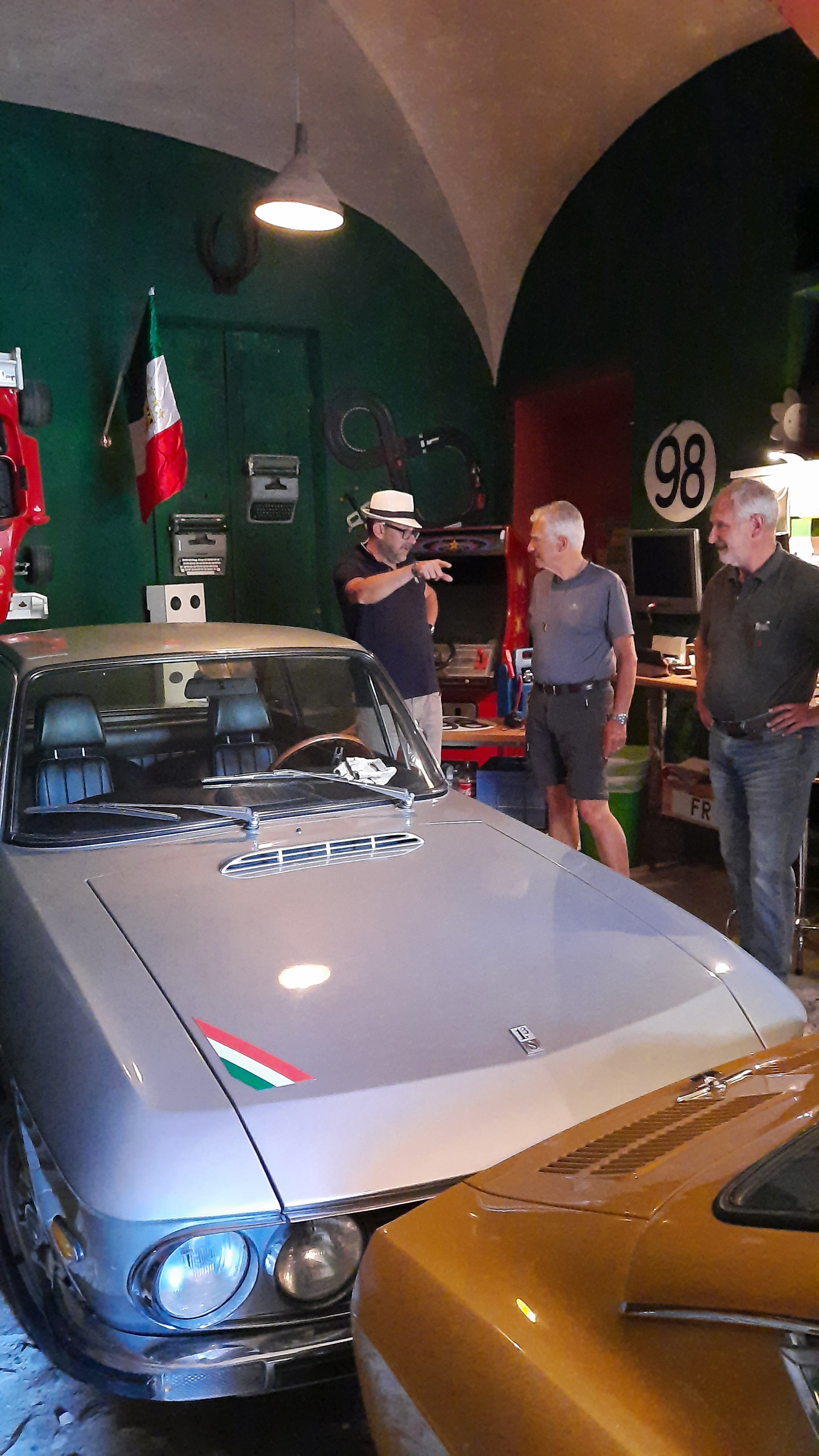 Una notte passata in un posto magico, al B&B La casa d’Ivy a Collepardo. Giorgio, il marito di Ivana, é un architetto ed un serio collezionista di modernariato e oggetti anni ’60 e ’70 che vengono da lui stesso trasformati aggiungendo altre funzionalità che impreziosiscono la collezione senza mai scivolare nel kitch. Vuoi il Juke-Box, o l’armadio dentro il Frigidaire con la leva a scatto, o la tanica di benzina metallica trasformata in cassa per altoparlanti, o gli orologi, le macchine fotografiche, persino trenini elettrici ed un personal computer della Olivetti, tutto é meticolosamente raccolto ed armonizzato con l’ambiente. Non ci vuole molto per portarci nel suo garage ad ammirare una Fiat 850 Coupé seconda serie 1972, gialla e una Lancia Fulvia coupè grigio argento. Troviamo anche una Lambretta del 1955 e altri motorini. Decisamente una coppia molto interessante. Al B&B di Ivana ritroviamo Angela e Stefania, con le quali programmiamo di fare la prossima tappa insieme partendo prestissimo per evitare il caldo.