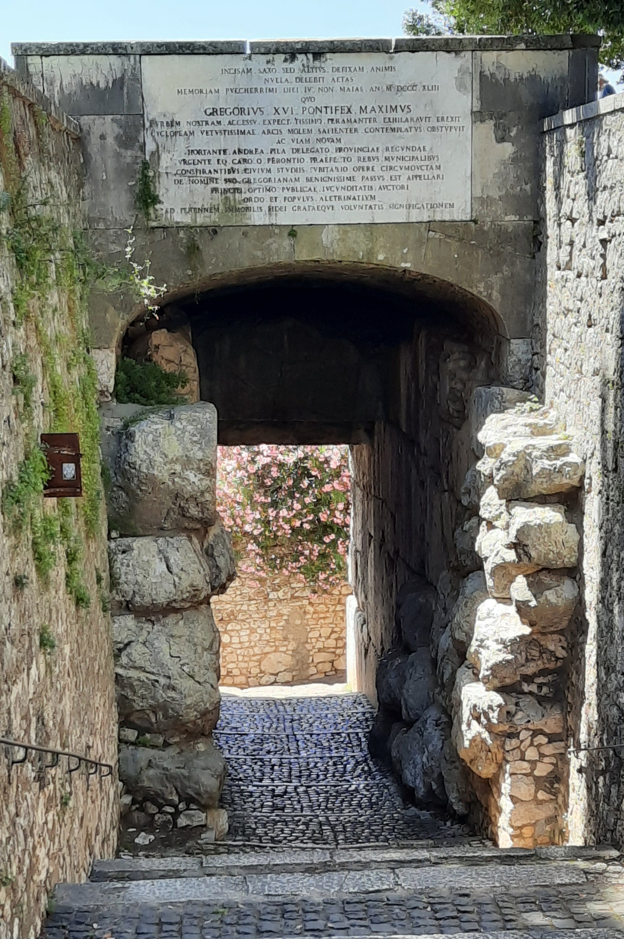 Pio ha una notevole capacità di parcheggiatore e non si dà pace finchè non riesce a trovare un buco a pochi metri da qualunque destinazione vogliamo visitare. Parcheggiamo infatti a pochi metri dalla notevole Acropoli di Alatri con la sua ciclopica cinta muraria molto evocativa e suggestiva. Un curioso bassorielievo corona la porta cosiddetta “dei falli”.