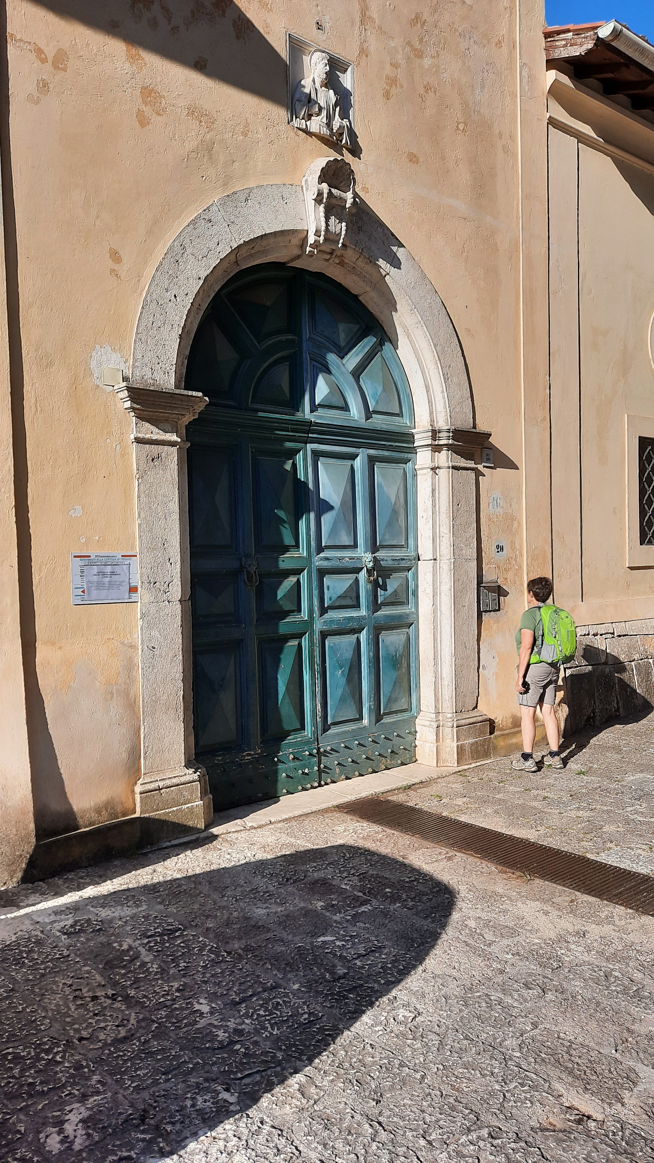 Dopo una manciata di chilometri su per una durissima salita arriviamo alla Certosa di Trisulti, chiusa per il Covid, ma che sappiamo essere stata aperta ieri per farla visitare ai pellegrini illustri che continuano a precederci. Non nascondiamo la nostra stizza per essere considerati pellegrini di classe B, ma tant’è, non vale la pena arrabbiarsi che tanto non serve a niente.