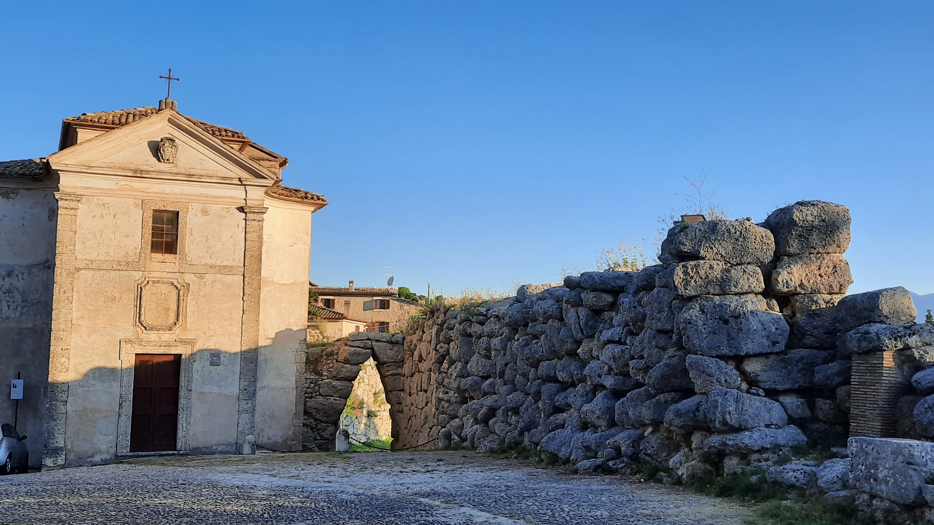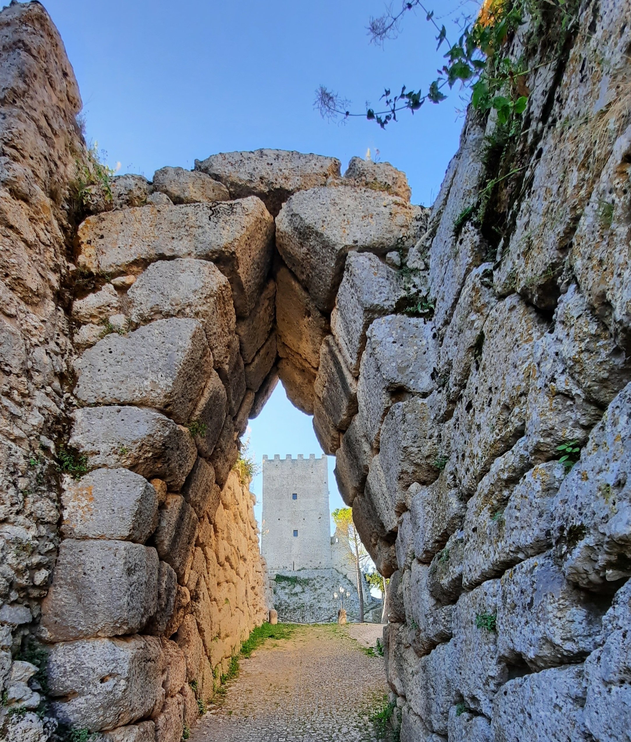 L’acropoli è un insediamento pre-romano del VII secolo A.C., perfettamente conservato e inframmezzato da giardini ben curati, e qualche casa di un certo stile nel borgo di Civita ad essa annessa. Una delle porte di accesso all’Acropoli è un arco a sesto acuto, l’unico rimasto in piedi in Italia, e che fa un po’ pensare alla Porta dei Leoni a Micene. L’ora mattutina è magica per fotografare queste affascinanti rovine e indugiamo a percorrerne i quattro angoli nel tentativo di portarci a casa i colori ed i suoni che ci circondano.