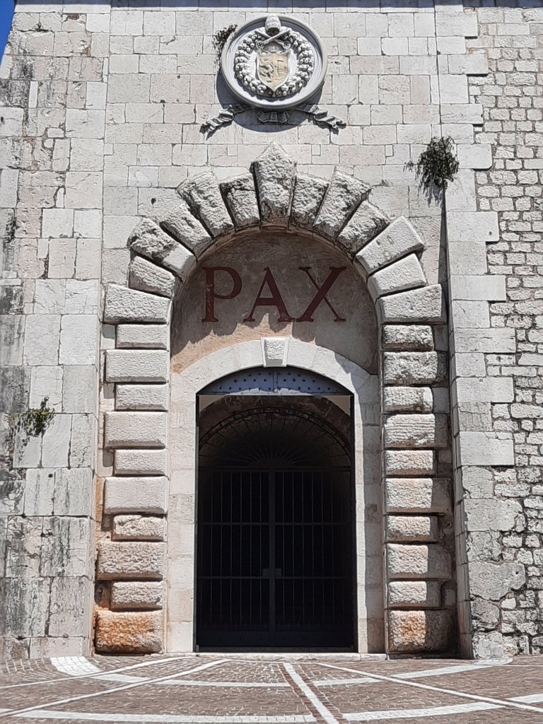 Il cammino giunge al termine, il Monastero accoglie i pellegrini con un saluto breve ed incisivo: PAX