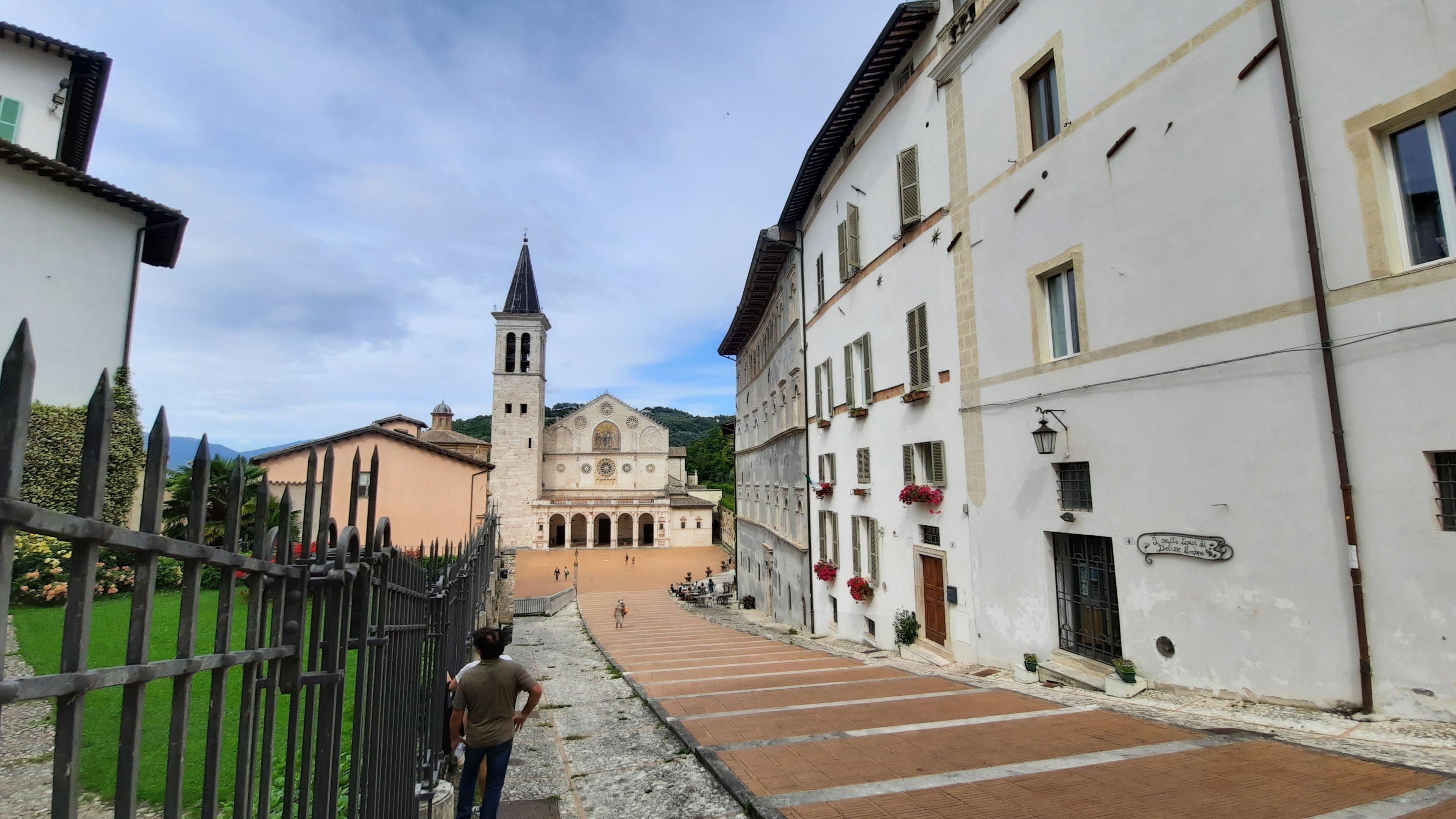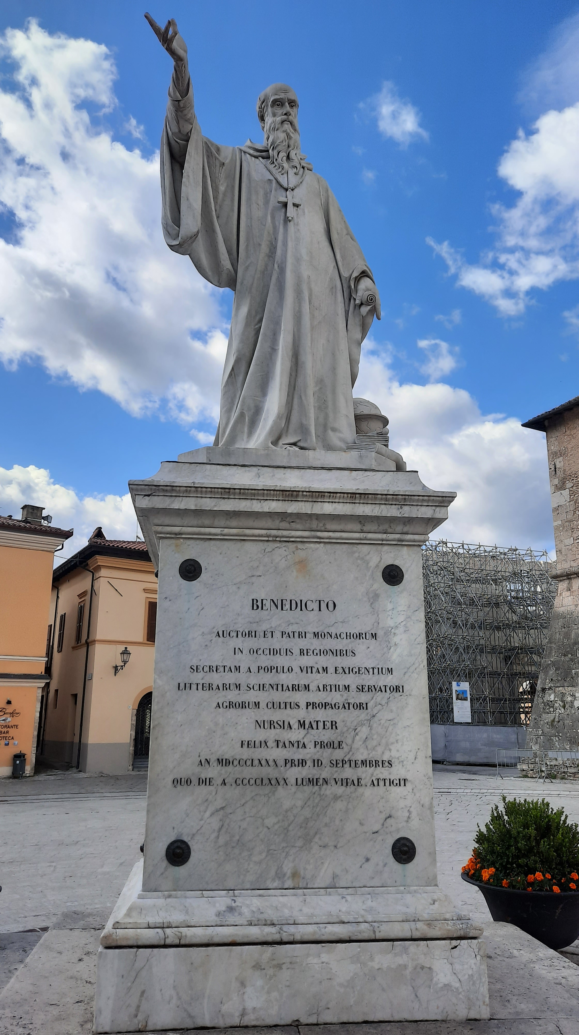 Negoziamo con un bar di tenerci gli zaini mentre saliamo i cento e passa metri di dislivello fino al Sacro Scoglio dove chiedo alla Santa di illuminare il nostro cammino con la luce della Sua preghiera. Da uno degli immancabili negozietti di souvenirs religiosi compro una medaglietta con la croce di San Benedetto, da mettermi al collo insieme agli altri portafortuna che porto sempre con me.