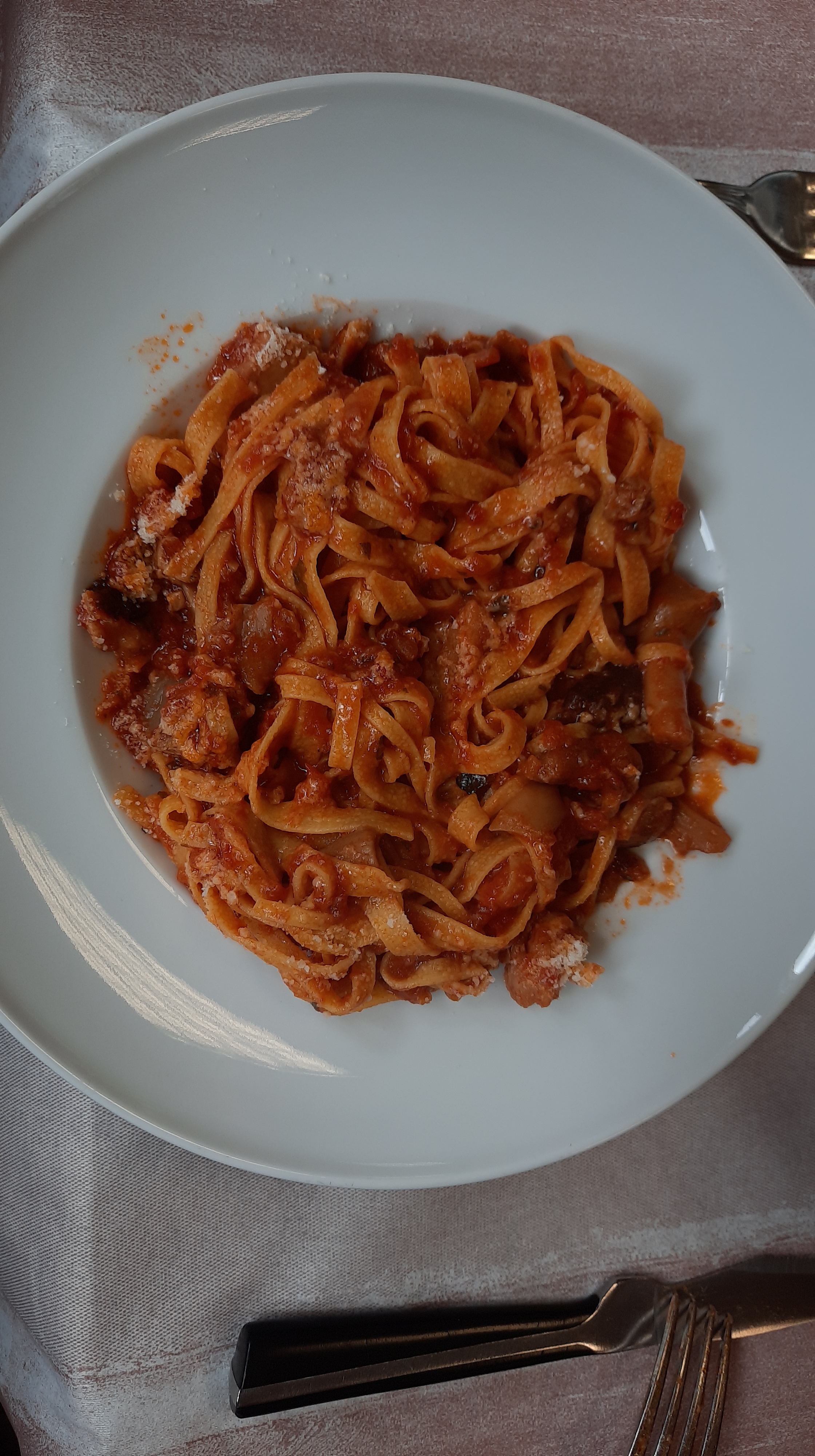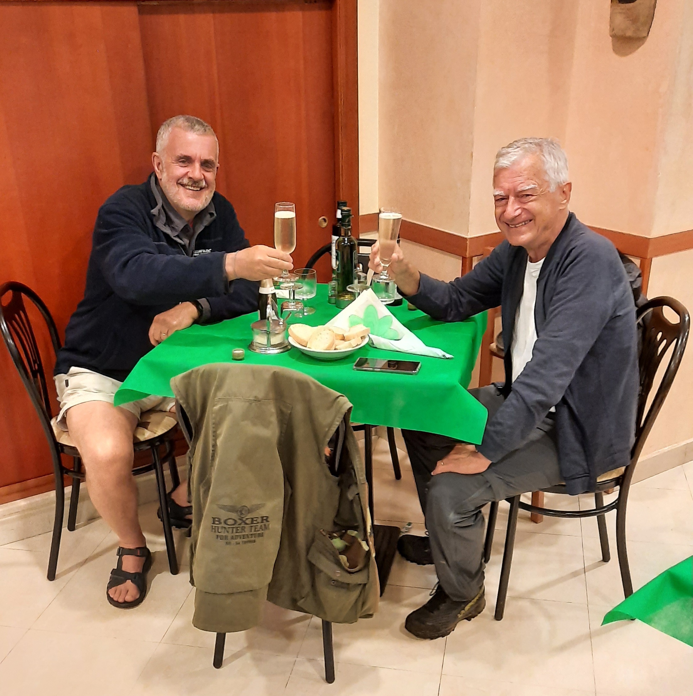 Finiamo in bellezza con una cena egregia servita dalla signora Piera con il figlio Saverio. Tutte le pietanze, compreso il pane, sono autoprodotte in azienda: assaggi di salumi, formaggi, zuppa di farro, polpette di chianina, insalata con fiori di borragine. Innaffiamo il tutto con un buon rosso schietto e finiamo in bellezza con un Passito di Sagrantino. Una meraviglia!